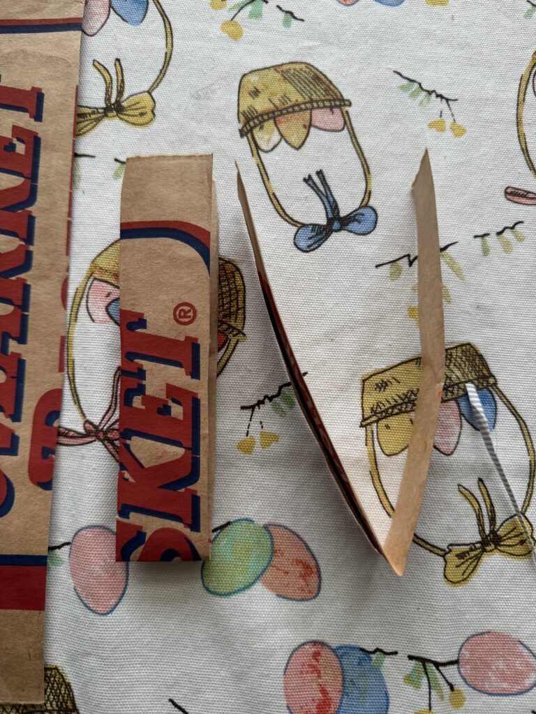 紙袋を切ったもので再現してみます。細長い短冊状に紙を切りまして、