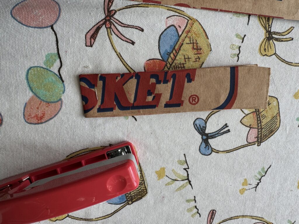 丈夫な再生紙なので真四角に切って折り紙にしました。(使ったのはトレーダージョーの紙袋です)