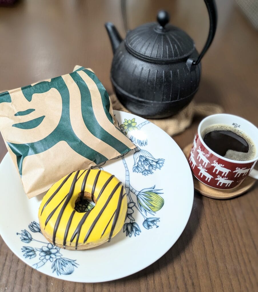 そんな雪かき後のご褒美としてスターバックスのチョコレートバナナドーナツを食べました!