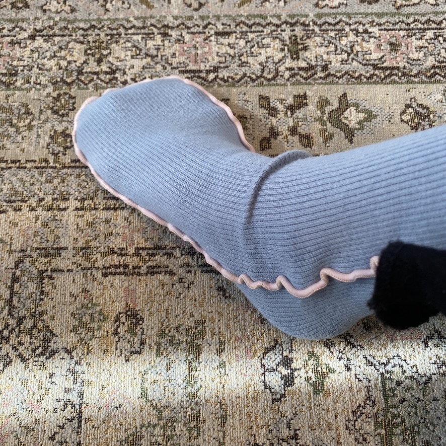 右の水色ソックスを購入したのは去年の5月くらいだったかな?残布で制作しているため、同じものがほぼないという一期一会なカラーリング。水色×ピンクのコンビが可愛くって購入しました!