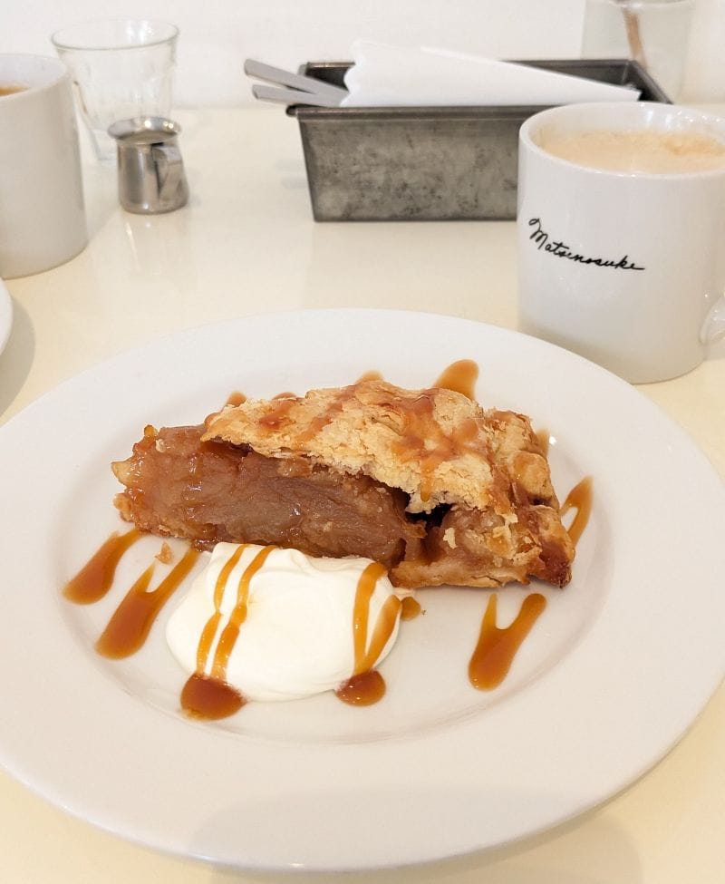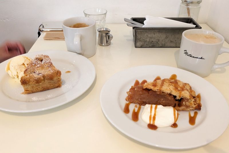 私はキャラメルアップルパイを注文しました。他のアップルパイもですがりんごがぎっしりで、生クリームやアイスのトッピングがまた食欲を注ぎます。あっ、シフォンケーキに生クリームのコラボも大好きです♡あ~、写真を見るだけでまた食べに行きたくなります。