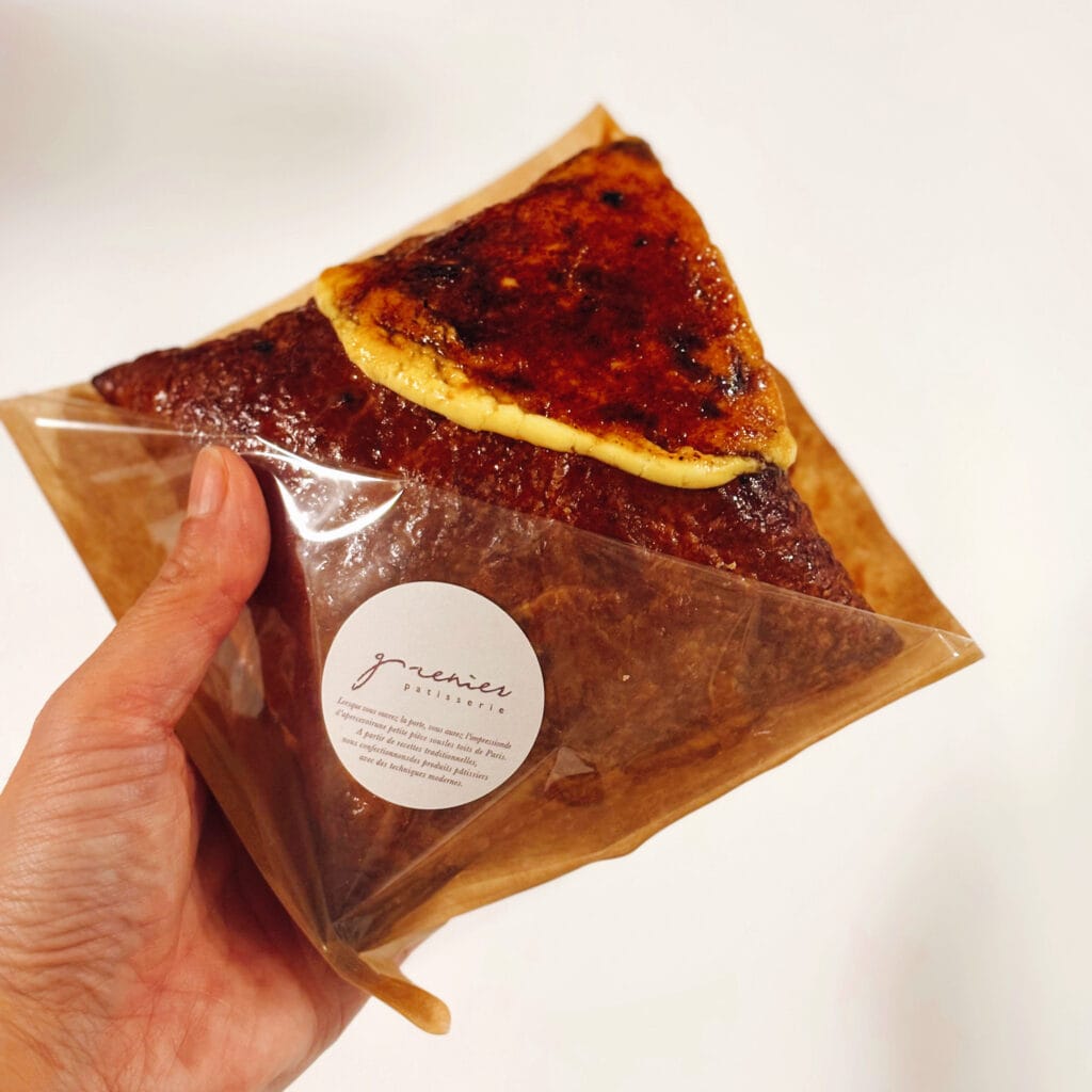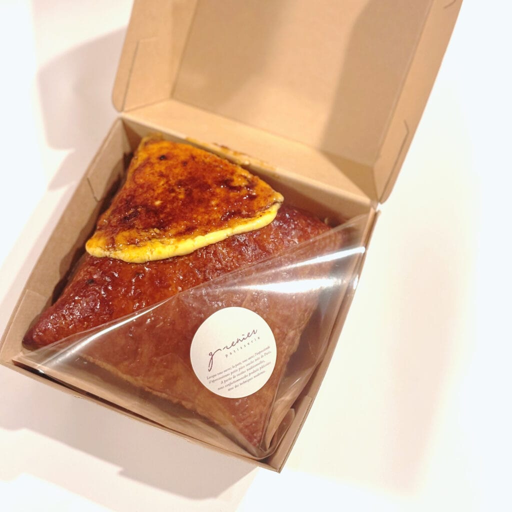 この日は焼き菓子を買うために訪れたのですが、ブリュレミルフィーユが箱に入れてお持ち帰りできると聞いて、思わず買って帰ってきてしまいました。