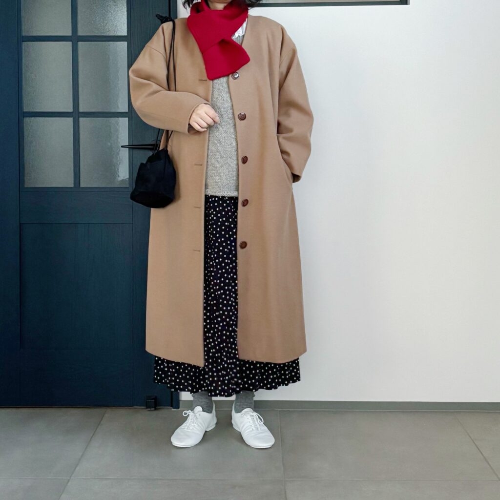 赤のニットやカーディガンも持っているのですが、今季お気に入りのマフラーで極ひとさじ。