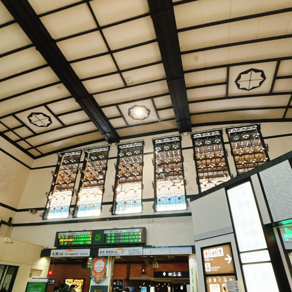 小樽駅の中は小樽名産のガラスランプが飾られていて美しく、造りもレトロ。改札の先は煉瓦造りになっていたのも素敵。