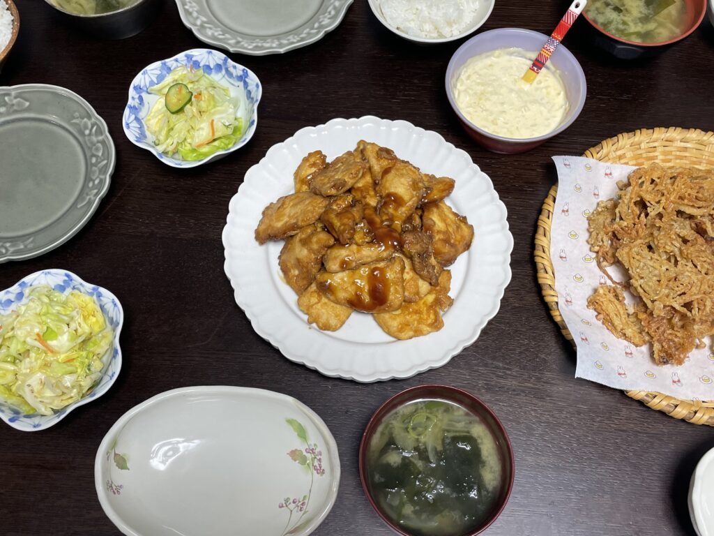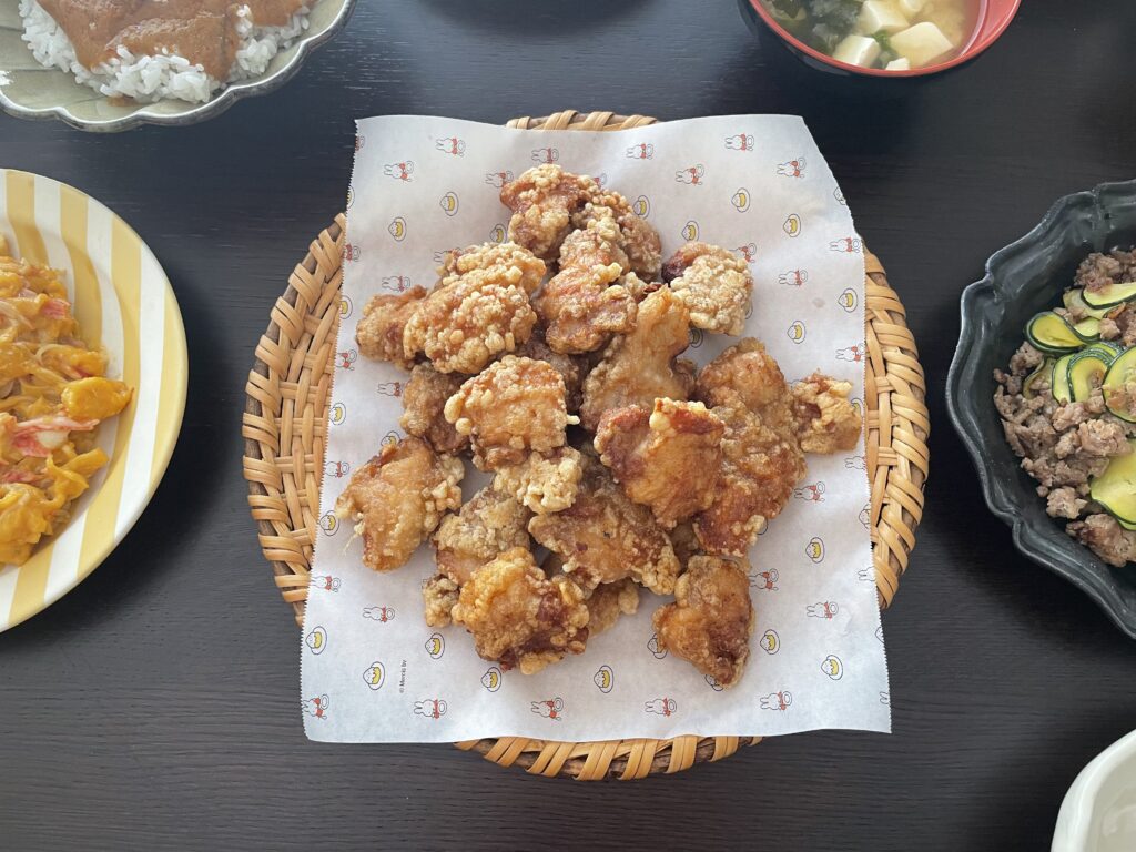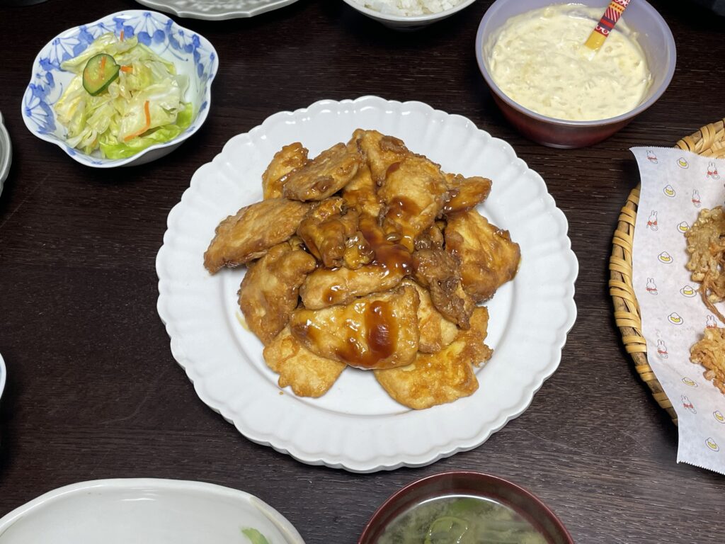 レシピではカボチャと一緒に揚げるのですが…、今回は鶏肉だけ!揚げているそばから子ども達のつまみ食いが止まらず!