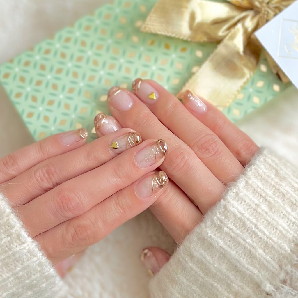 親指と薬指にだけ、ゴールドのハートチャームをオン。