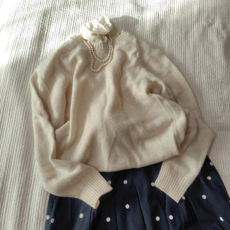 今の気分は、白のニットにパールのネックレス♡お出かけに行きたくなります〜。