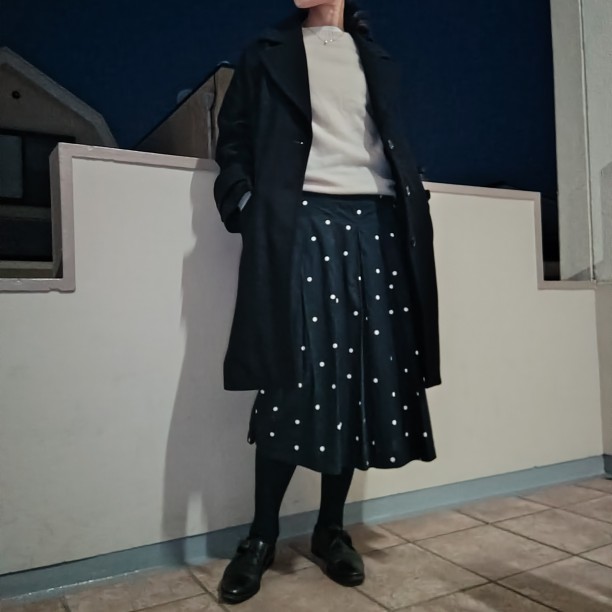 色数を増やさず、シンプルに合わせるのがこのスカートの良さを生かせそうかなと写真を並べて思いました。