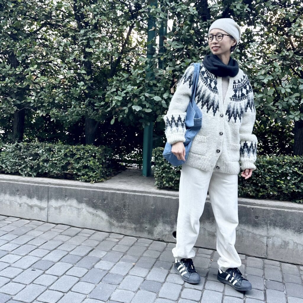 パンツの下にはアルパカのレギンスを仕込んでいるのでぽっかぽか。