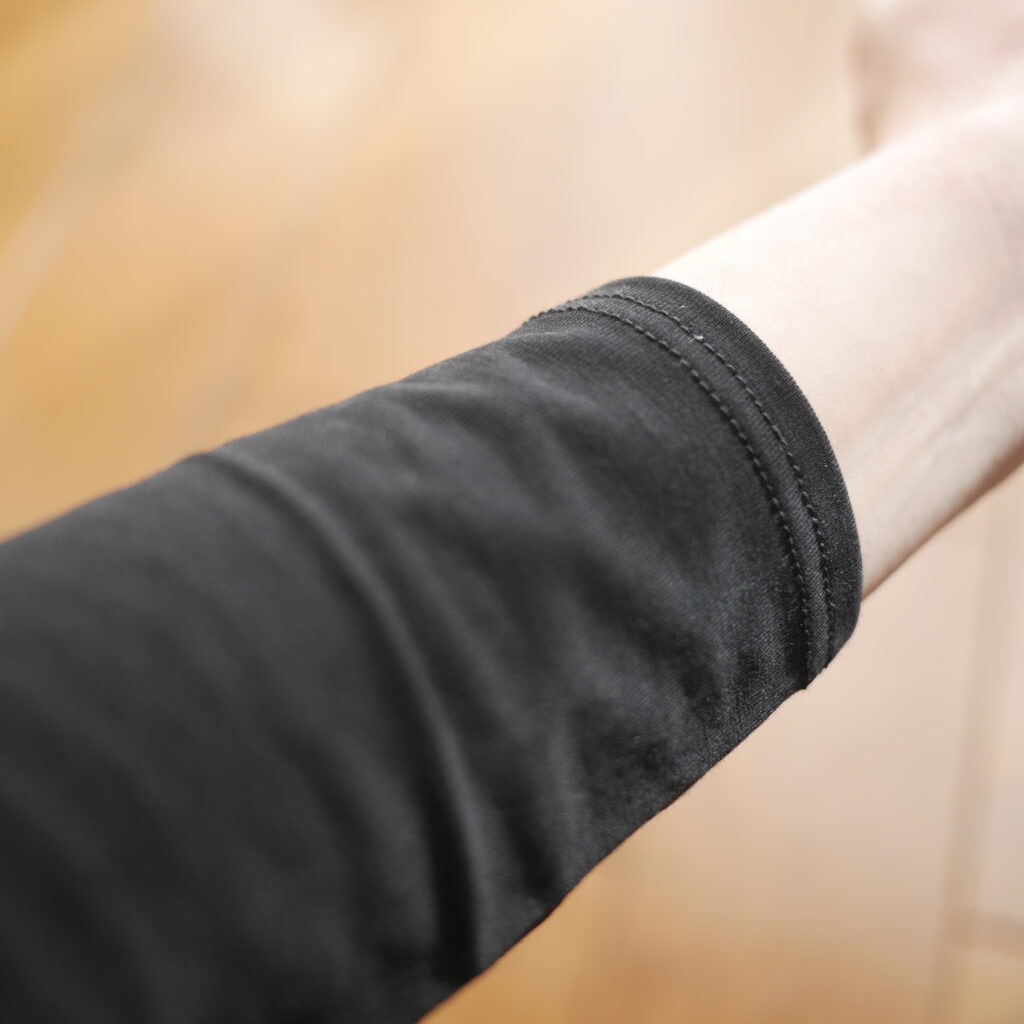 外気温の影響を受けにくい特殊ポリマー配合とのことで、衣服内の温度を調節してくれる優れモノなんです。そして私が一番気に入っているところは、汗取りパッド付!