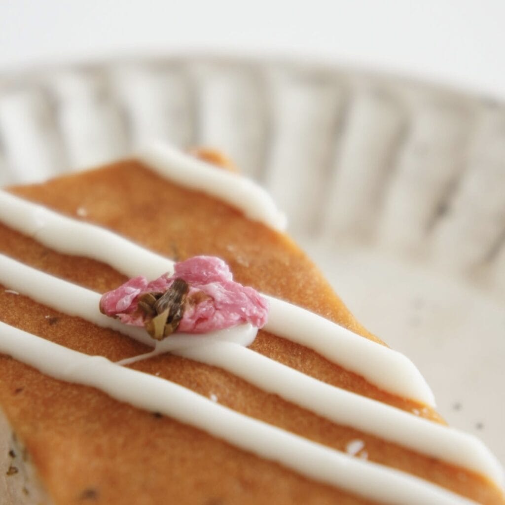 以前買った桜のスコーンにもありましたが、桜の花びらの塩漬けがちょんと乗っていて。あー弱いんです私。桜の塩漬け大好き!