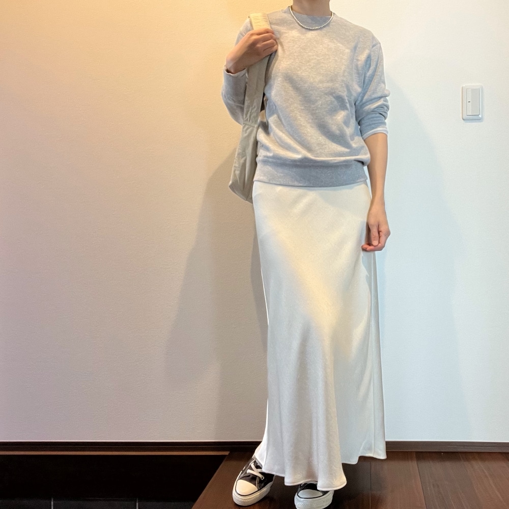 今の時期に履ける白いパンツをもっていなかったので、代わりに白いサテンスカートをあわせて真似っこしてみました◎