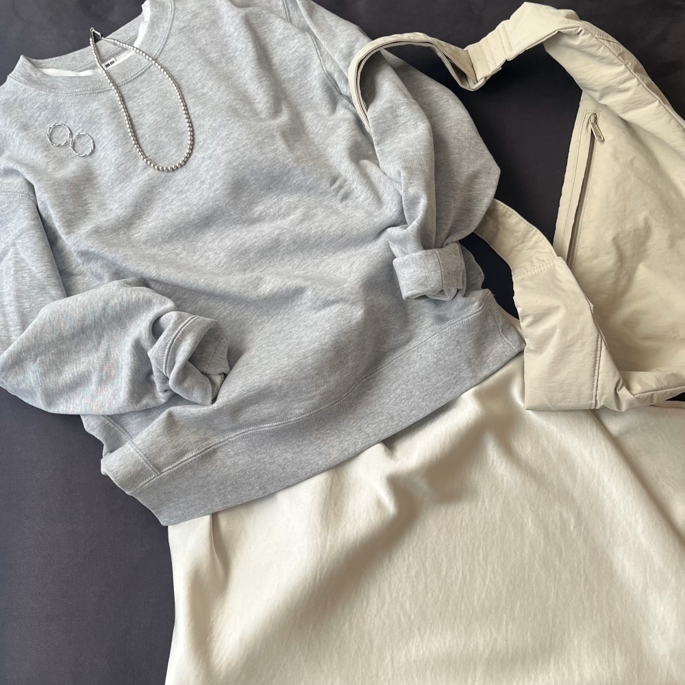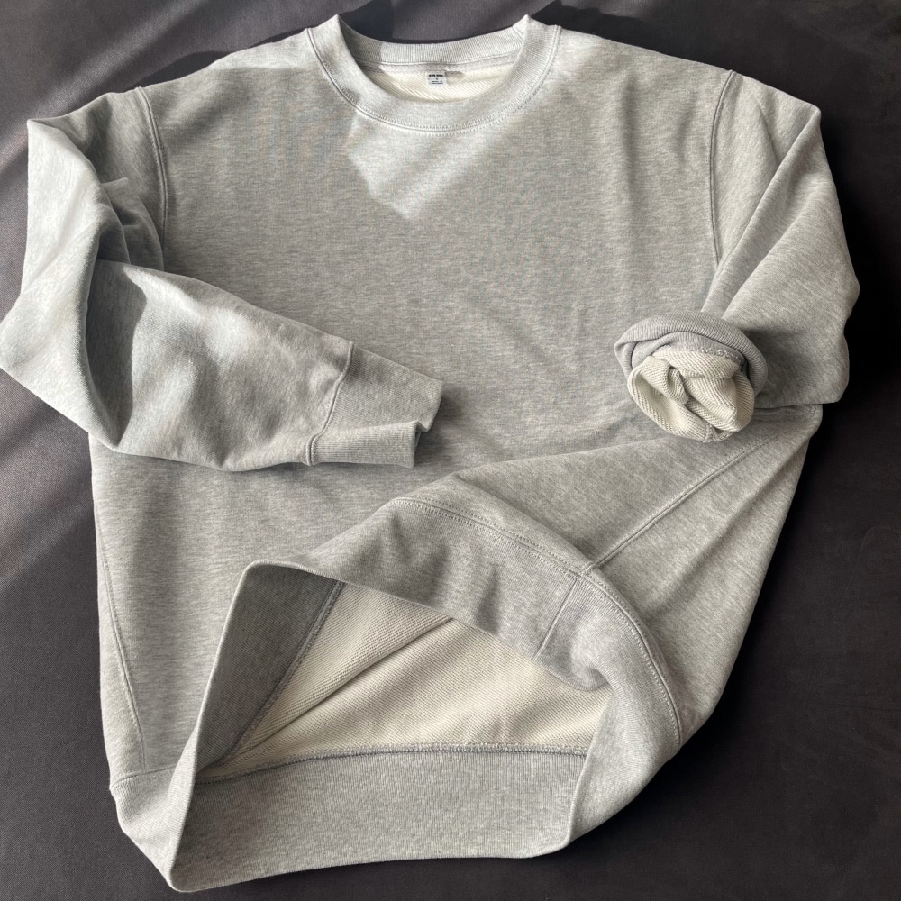 新しいスウェットのクリーンな雰囲気だったらきれいめに着やすいかなと思い、着古した感じが出てきたものを手放し、ユニクロで新たに購入しました。
