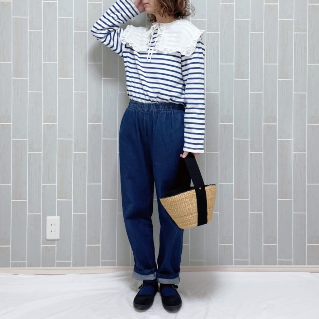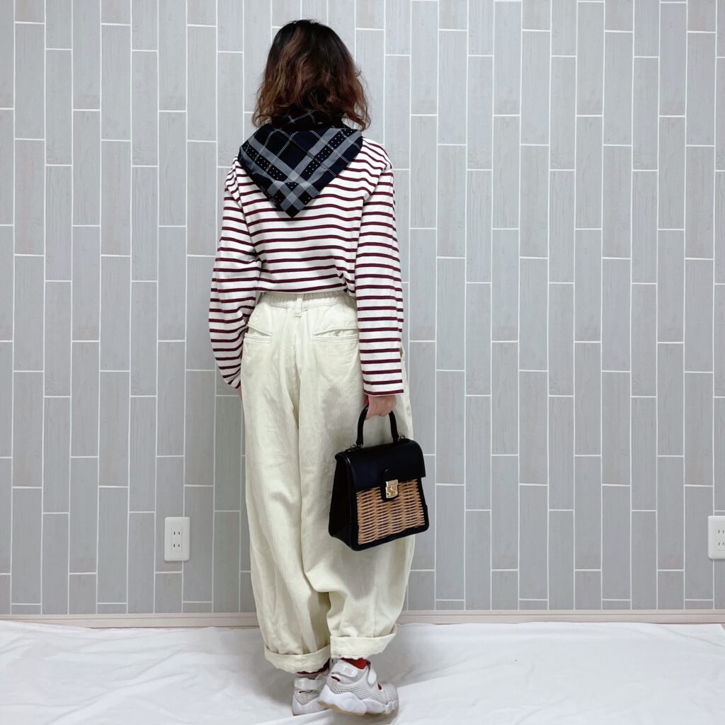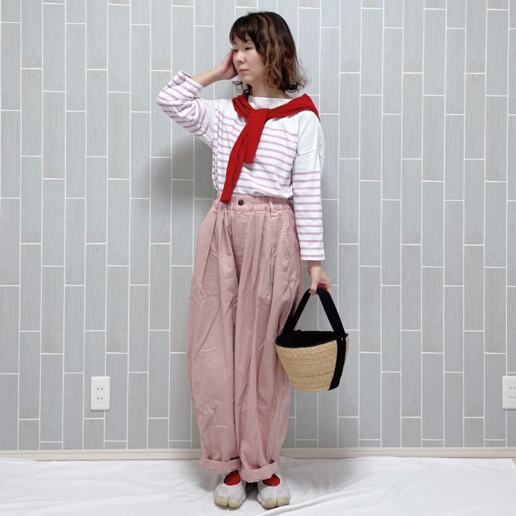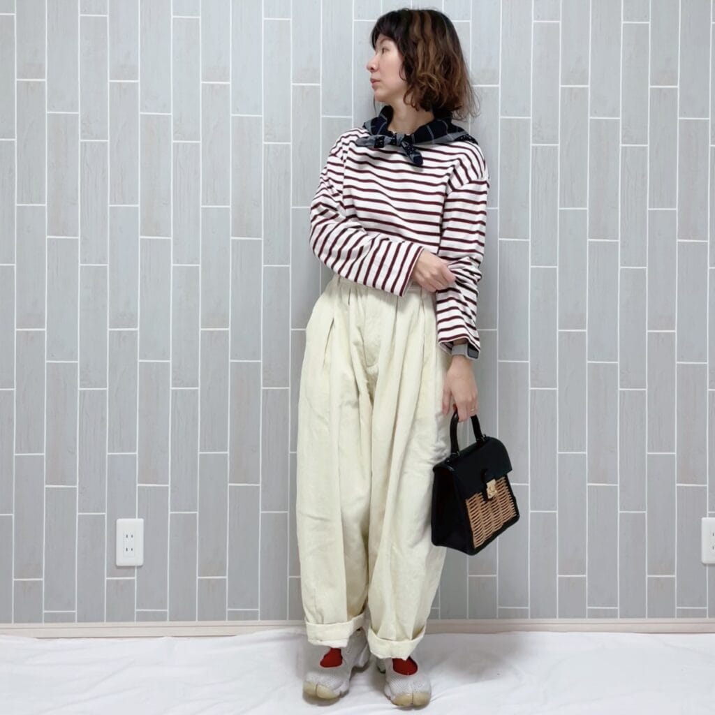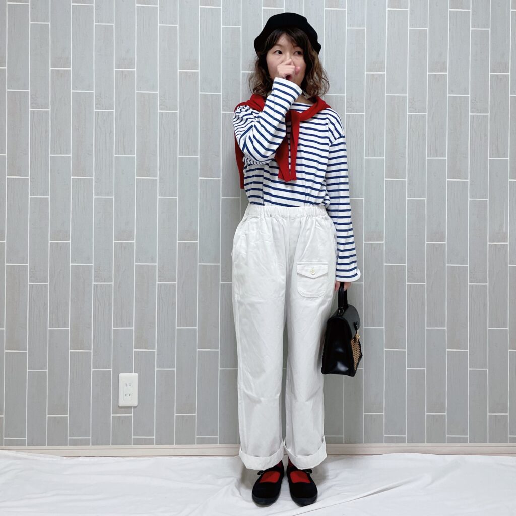 上記のクリップでも着用していたこちらのボーダー着回しコーデを。