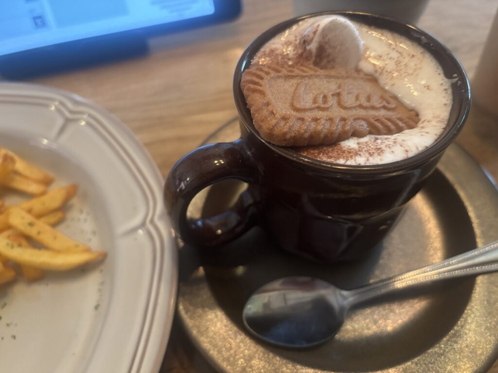 Lotusのビスケットまで入ってる❤️かわいらしくあったまるおいしいココアでした。