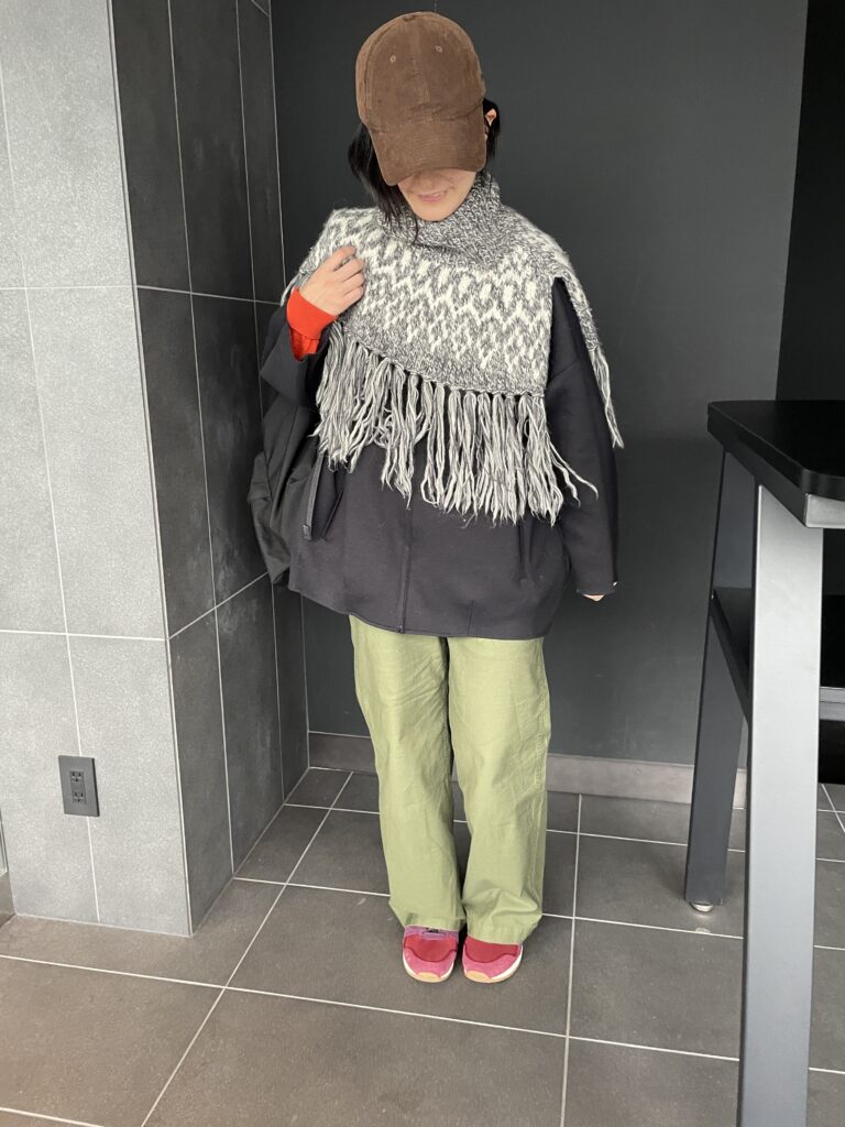 丈は長めで、ヒールなしの靴だと地面すれすれなのですが、脚が長く見えて、折ってもカジュアルな感じで履いても良い。