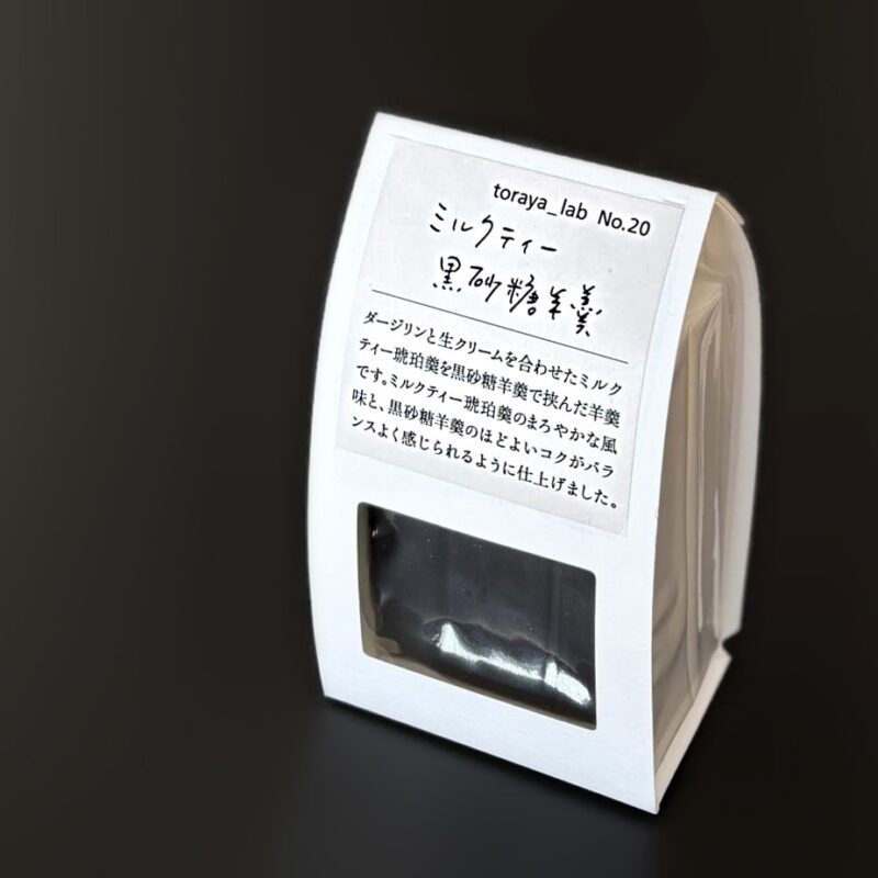 今回の羊羹は、ダージリンと生クリームを合わせたミルクティー琥珀羹を黒砂糖羊羹で挟んだ逸品。