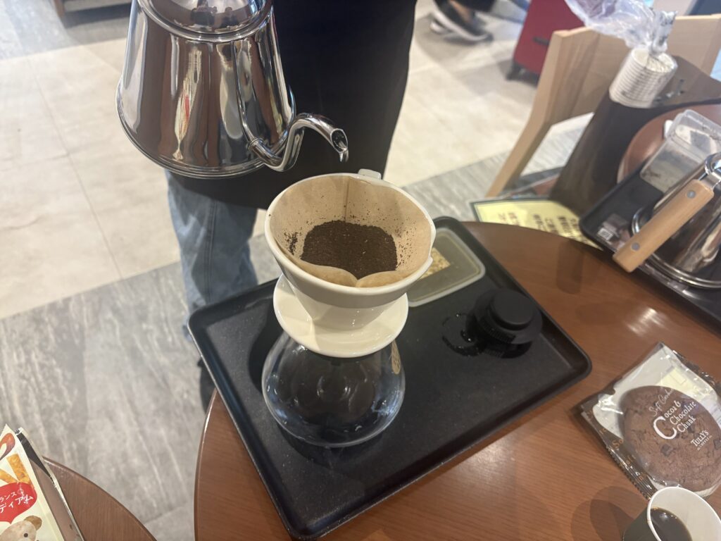 これがなかなか難しい…!特に、コーヒーの「土手」(外側にできる粉の壁)を作るのが思った以上に難しかったです。