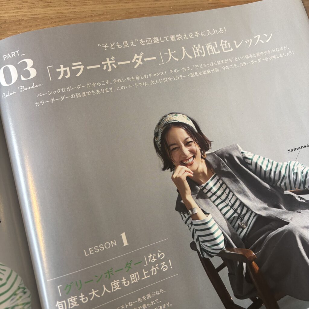 そして、大大大好きなフレンチボーダーを、高垣麗子さんがとびっきり素敵に着こなしています😍何度でも見たくなる、うっとりするぐらい好きなページです。
