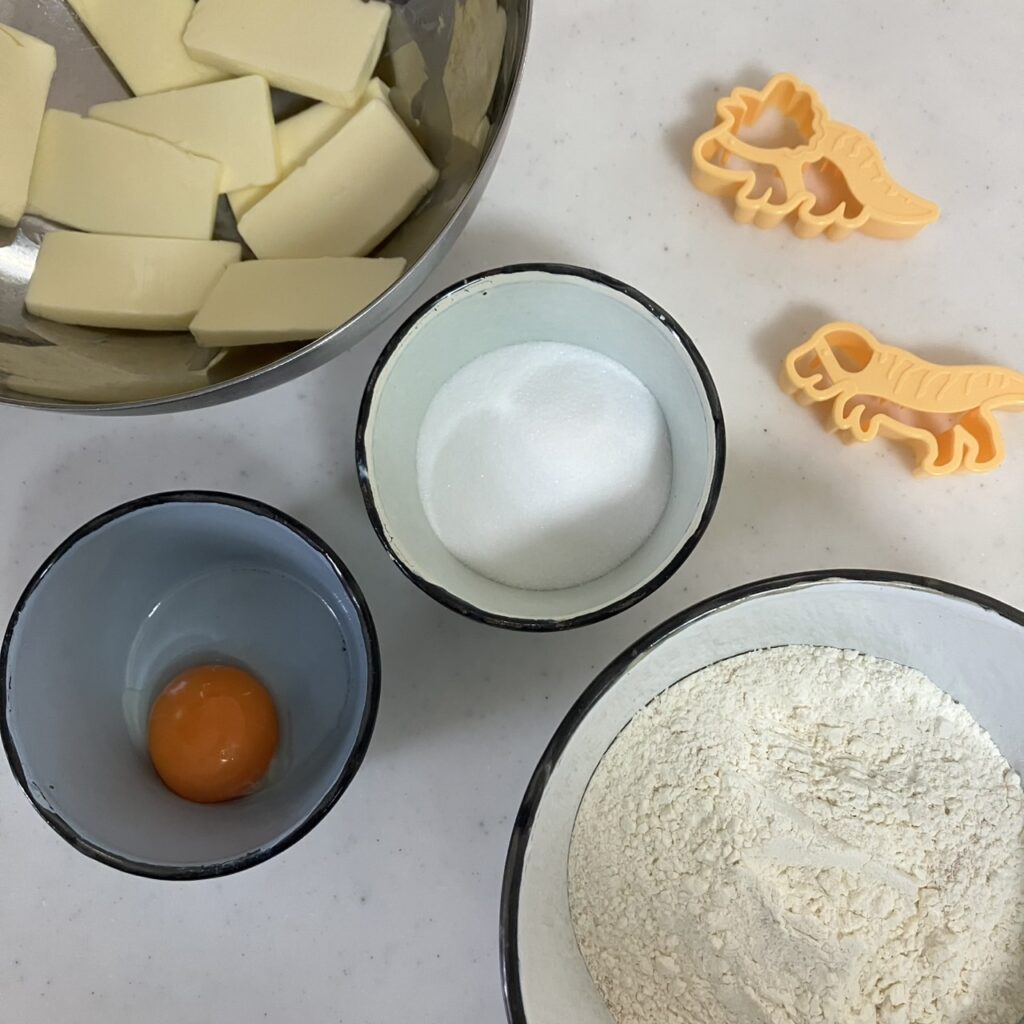 クッキー生地が詰まってしまい、息子希望の恐竜型のクッキーはなんだか残念なことに… 笑