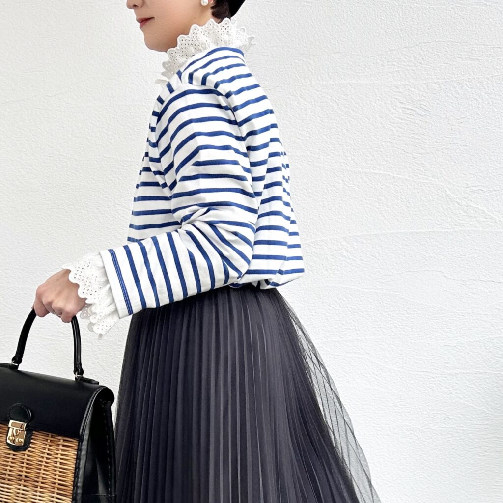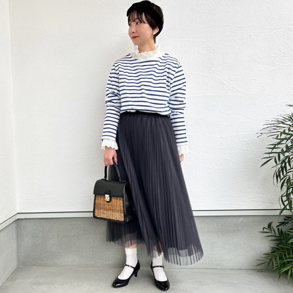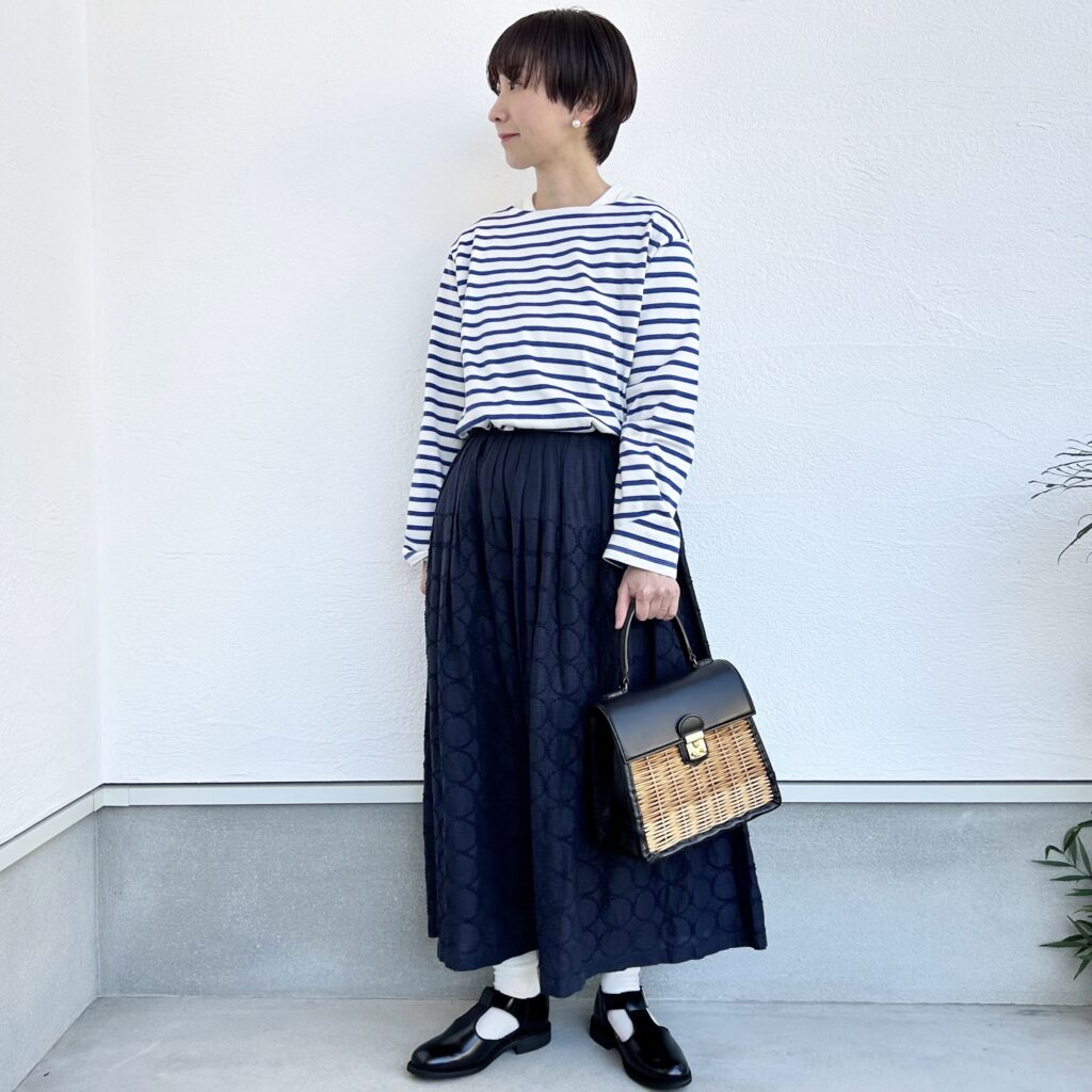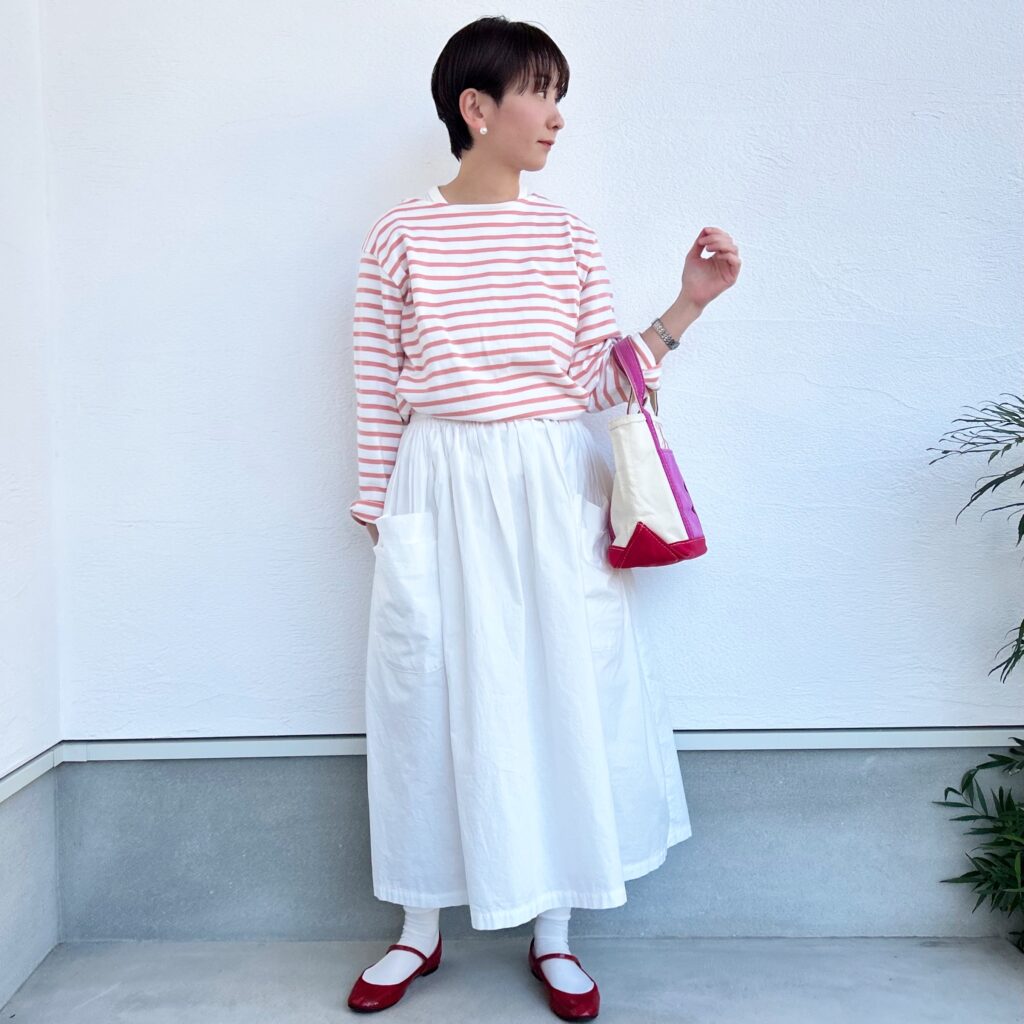 ボーダーTは、デニムやパンツはもちろん、スカートとも相性が良い万能アイテムなので、いろんなコーデが楽しめますね。