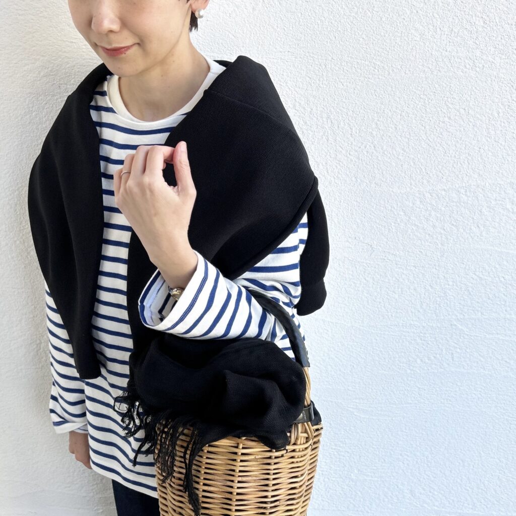 ブルーボーダーとデニム合わせのマリンコーデに。