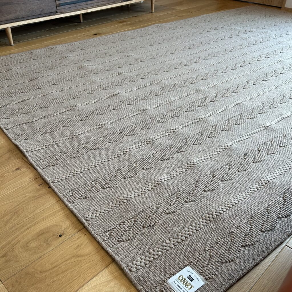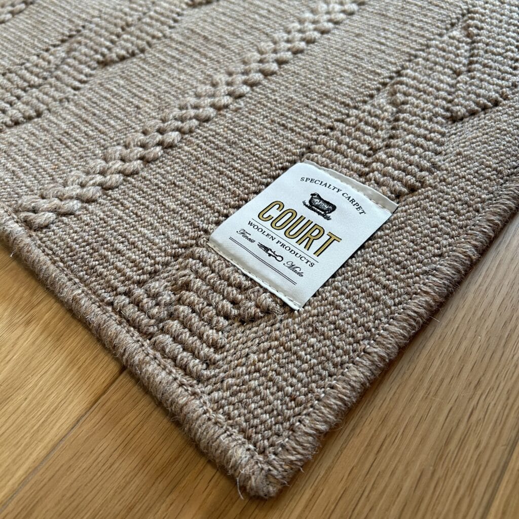 ウィルトンカーペット製造会社の堀田カーペットさんは1962年に大阪府和泉市で創業。もともとは法人向けにウールのカーペットを作っていて、その丈夫さと確かなクオリティーは、五つ星ホテルやハイブランド、官公庁など名だたる取引先から声が掛かるほどなのだそうです。「ウールのカーペットを、もっと身近なものに。」という想いを込めて、一般のお客様向けにつくったラグブランドが「COURT(コート)」。職人さんが丁寧に作ってくださいます。堀田カーペットさんのwebサイトはもちろん、Re:CENOさんのwebサイトにめちゃくちゃ詳しく説明が書いてあるので気になる方は見てみてください!
