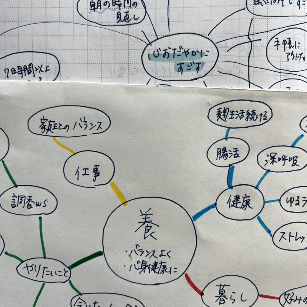 2年前からマインドマップを使って、1年間どんな風に過ごしたいかを書き出しています。