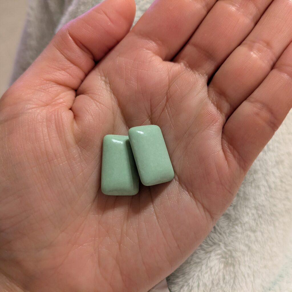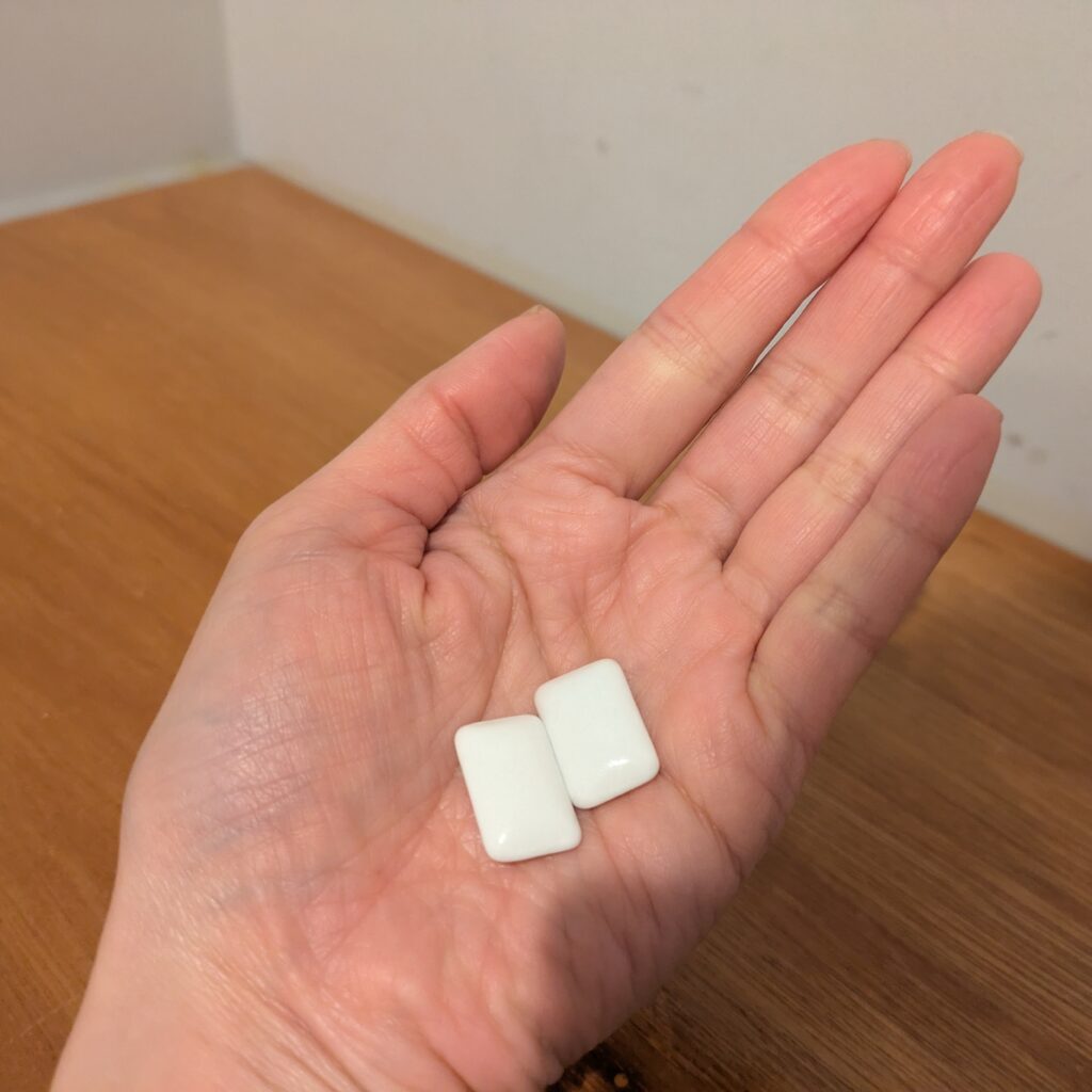 久々に噛んでみると、どちらも程よい硬さで噛みごたえがあります。ミントガムってなんだか辛いイメージがあったのですが、キシリトールガム〈ライムミント〉、キシリトール オーラテクトガム〈クリアミント〉のどちらも、優しい甘みが感じられて噛みやすかったです!