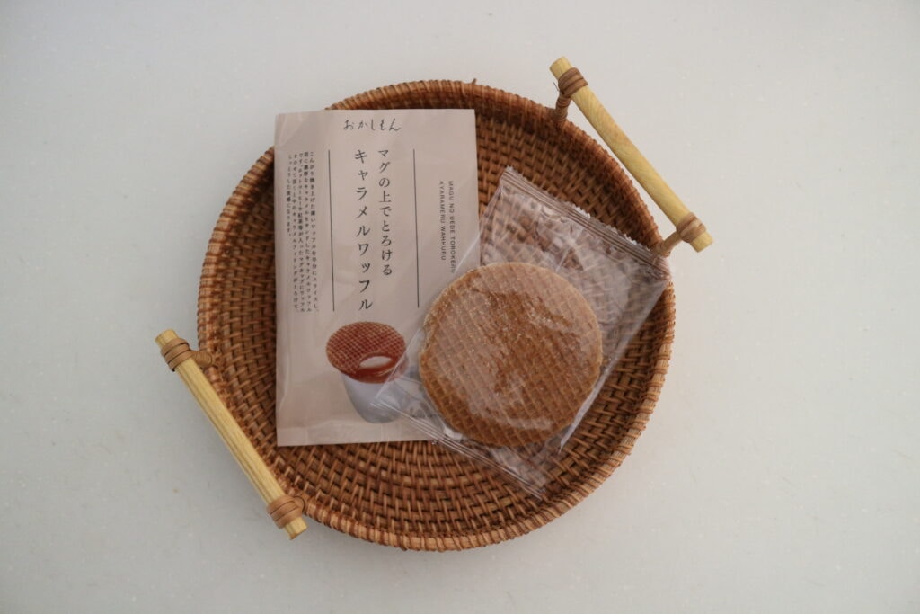 薄いワッフルの間に濃厚なキャラメルがサンドされているのですが、パッケージにも説明があるように、ホットコーヒーや紅茶など入れたマグカップの上にフタをするようにワッフルをのせて、湯気で少し温めます。