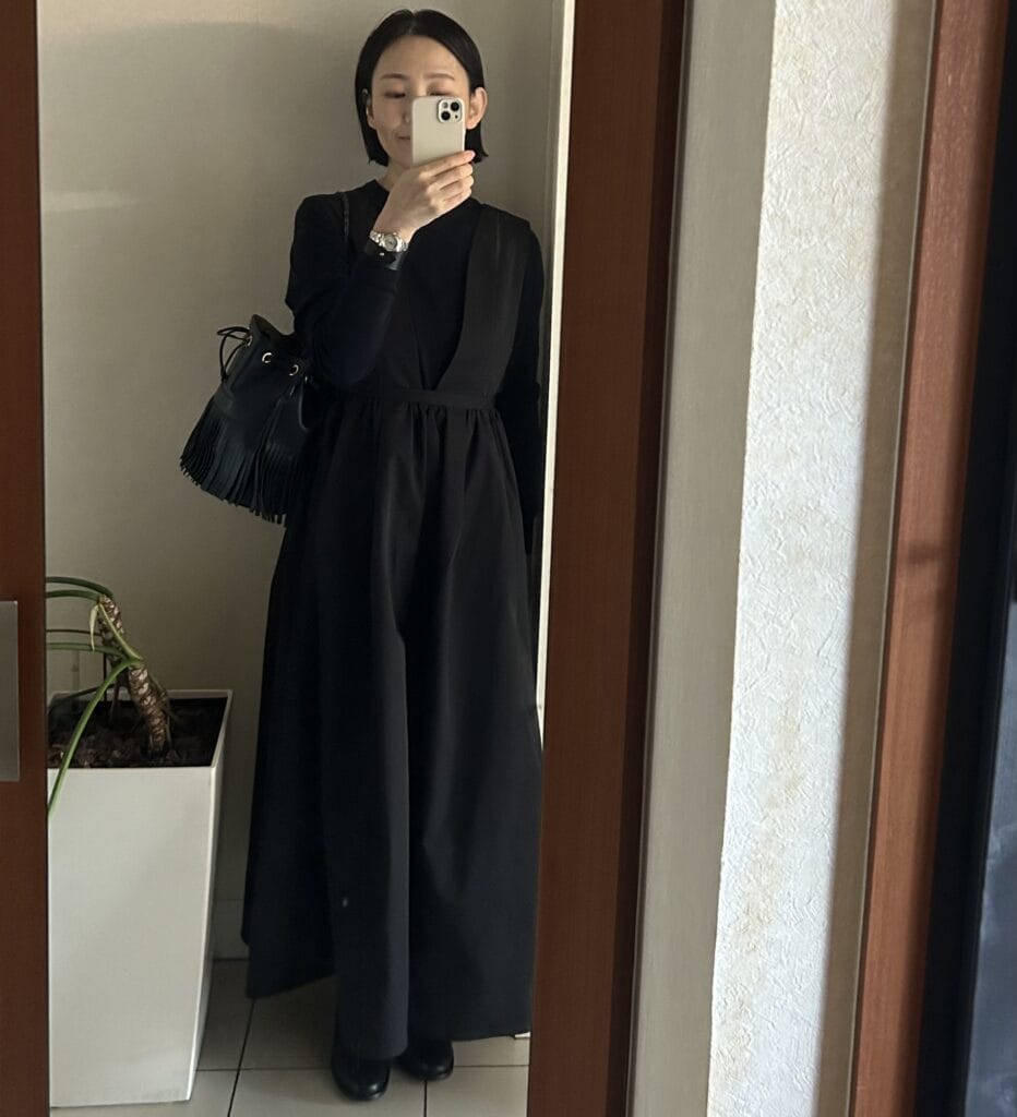 全身黒に見えますが、ニットとバッグはネイビーのネイビー×ブラックでした。