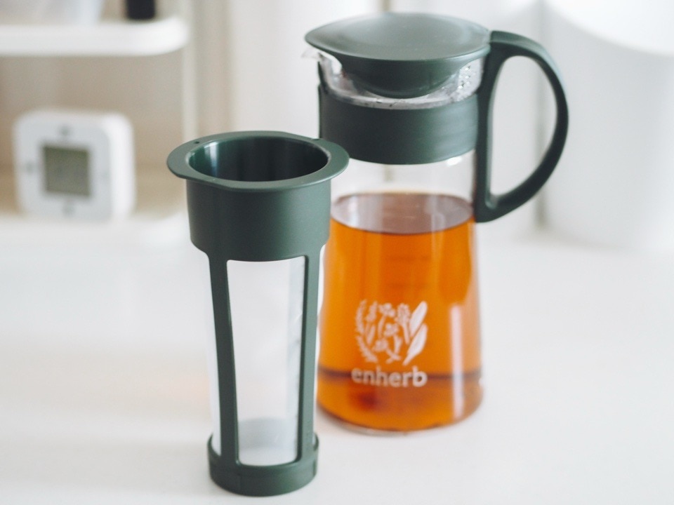 ハーブティーは、一度にたくさん飲むよりもこまめに飲むのが良いとお店の方に教えてもらったので、ポットで一日分を抽出して冷蔵庫に入れています。