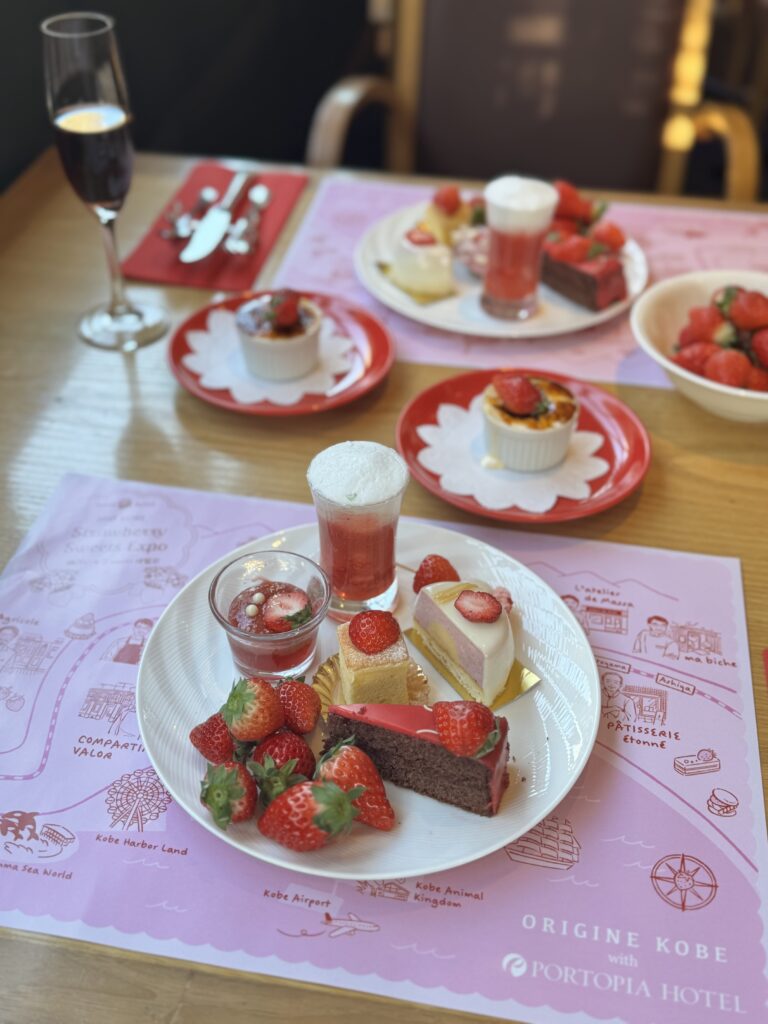 友人と神戸ポートピアホテルで開催中のいちごビュッフェ「神戸いちごSweets博覧会」へ行ってきました。