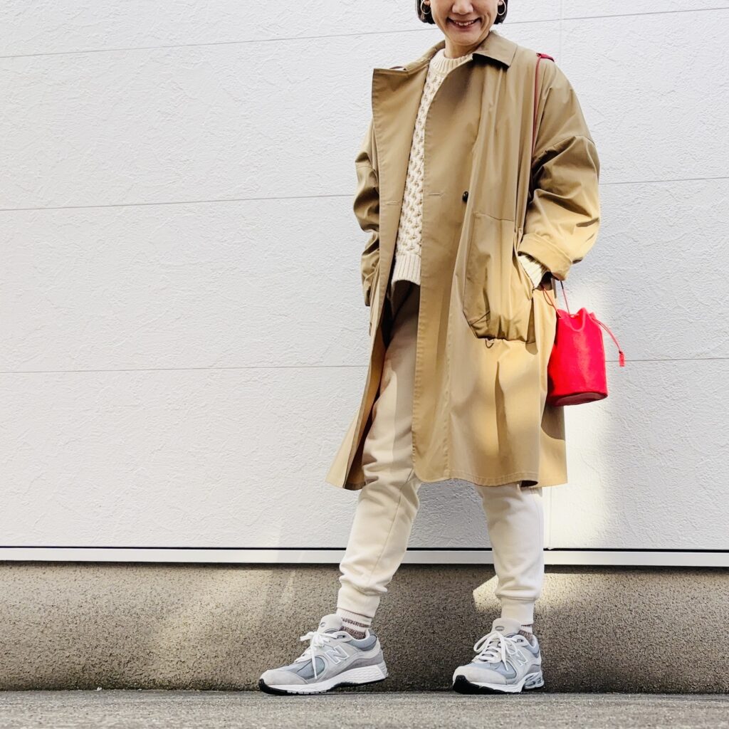 ちょっとバッグの色味が効いてるスタイルが好きなんです。