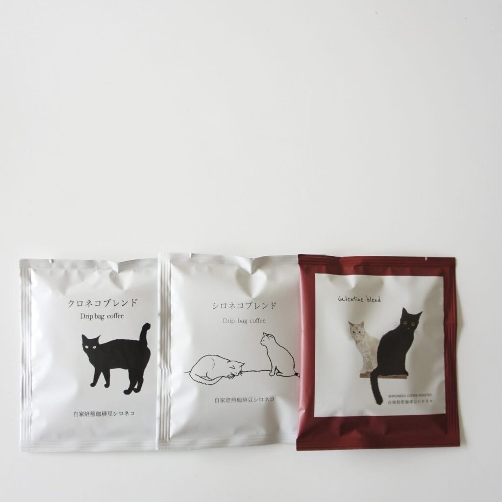 お店に伺ったのがバレンタイン前だったので、バレンタイン限定のブレンドコーヒー、お店の看板商品シロネコブレンド、そしてまたもや無意識のクロネコブレンド🐾
