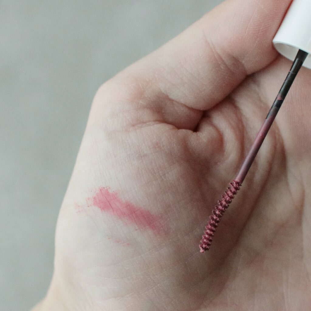 青み寄り、黄み寄り、いろんなピンクがありますが、こちらはコーラルピンクということで、オレンジみというか赤みの入ったようなピンクで、私の手持ちのピンクマスカラ達とはまた違った色みで新鮮です。