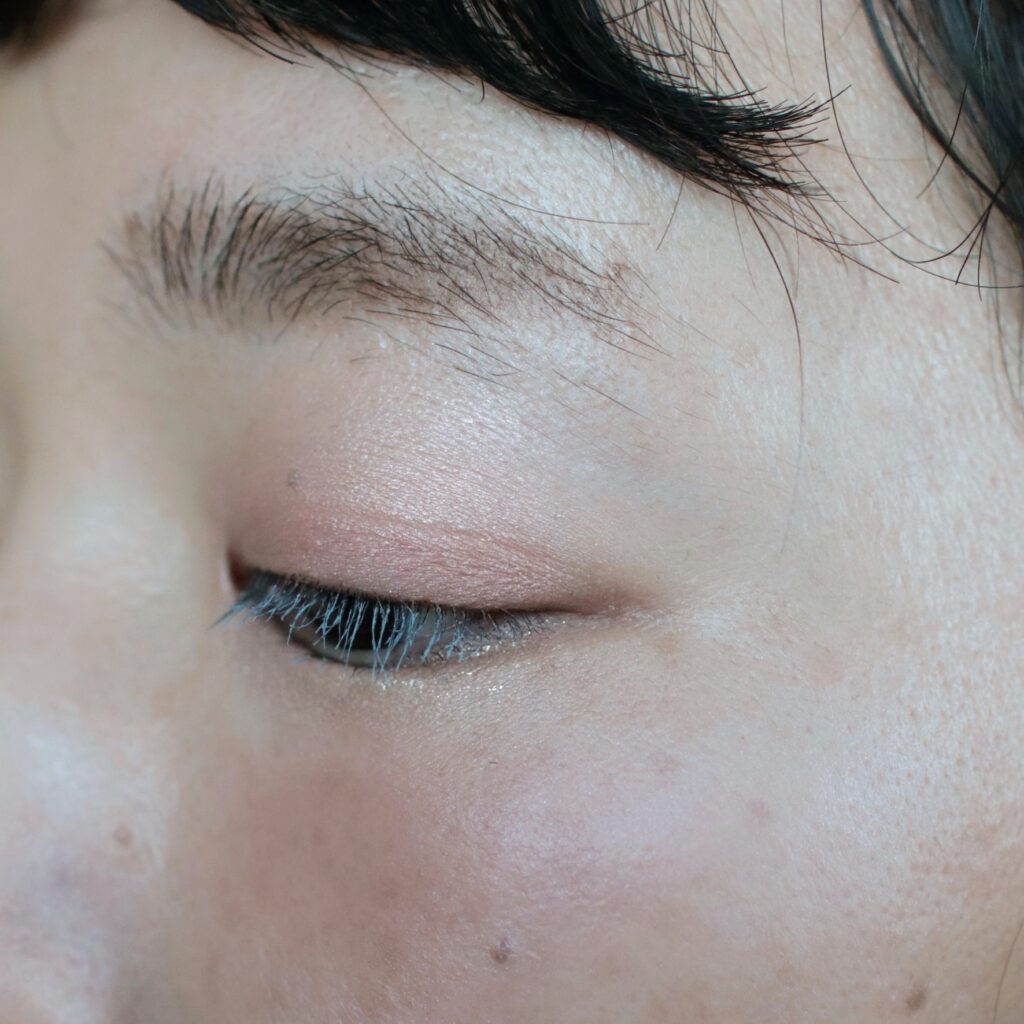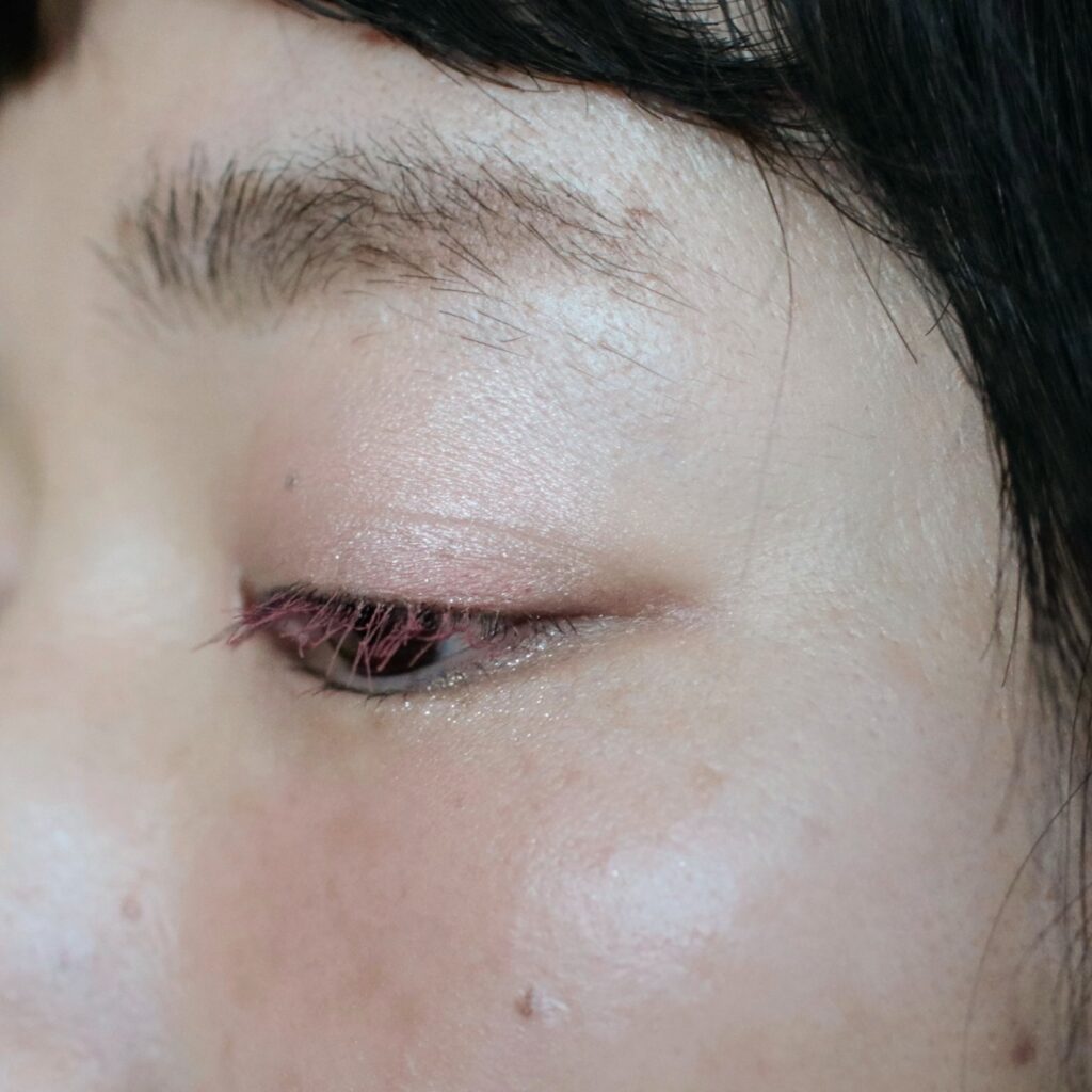 101 あどけなブルー、まつ毛に塗布してみました。ビューラーはもう20年くらい使っていないので笑、分かりにくくてすみません…