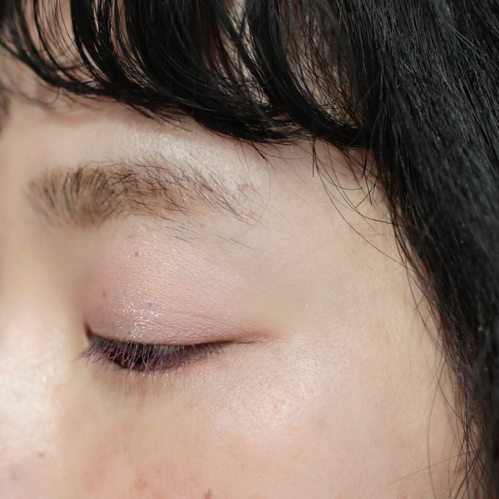 スウォッチはこんな感じ。パープルですが、ブラウンが入ったような色みなので、目元に乗せると主張は弱めです。