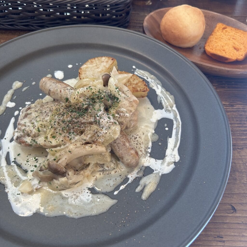 メニューは迷って2人で同じものを。鶏肉はホロホロ、丁寧に焦がしてあるカブと火の通った玉ねぎ、プリプリのソーセージが美味しすぎましたし、ソースは一滴残らずパンで掬い上げて、お皿がピカピカになるまで頂きました。出てくるお料理一つ一つが美味しくて、また食べたい。ご馳走様でした。