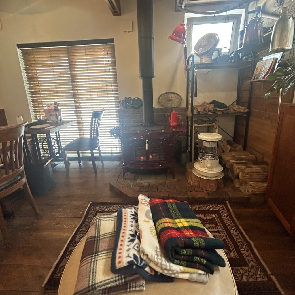 靴を脱いで寛げる空間になっており、小物一つ一つがまたおしゃれです。私たちは暖炉に1番近い席に座りましたが、「暑かったらこちらの窓をあけてください〜」と優しいオーナーさんの言葉掛け。嬉しいお心遣いに感謝です。
