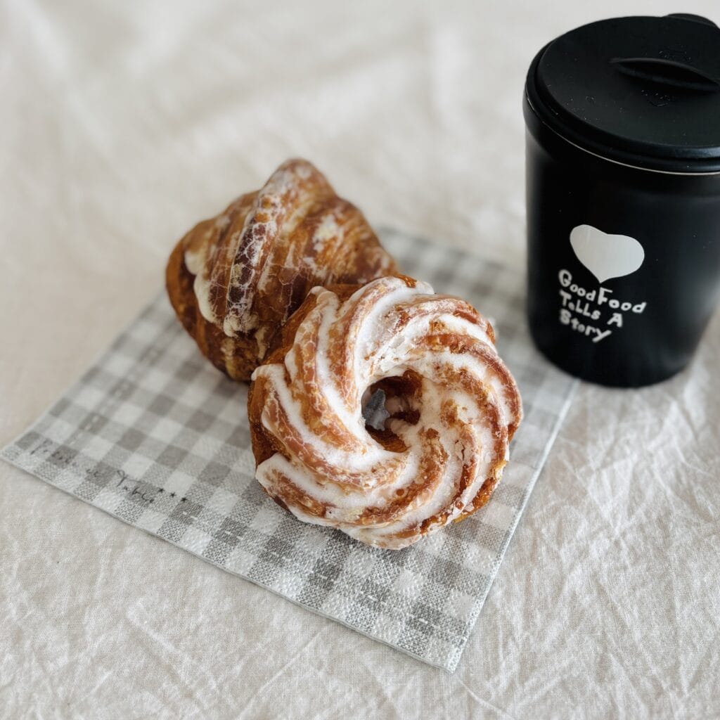 カリッと焼かれたフレンチクルーラーは、アイシングの下にふわっと柔らかな生地が。