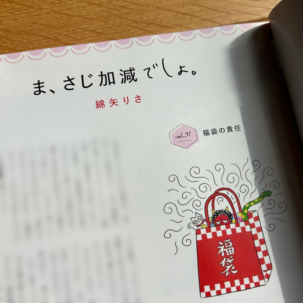 毎回、レビューブログに書いていますが、綿矢さんの語り口が大好きな連載エッセイです。今回は福袋について。開封して「失敗したな〜」と思った時、「もう2度と買わない」と誓う福袋。でも、また買ってしまう。不思議な魅力を持つ福袋・・・。今回の話も面白かったです。