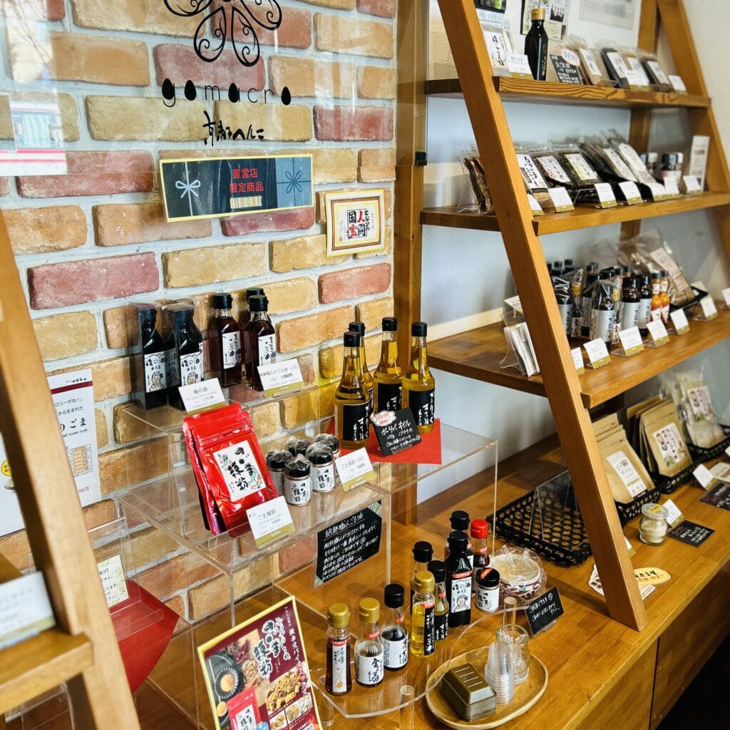 店内はカフェスペースとショップスペースに分かれており、ショップスペースには山田製油の製品がずらっと並んでいました。