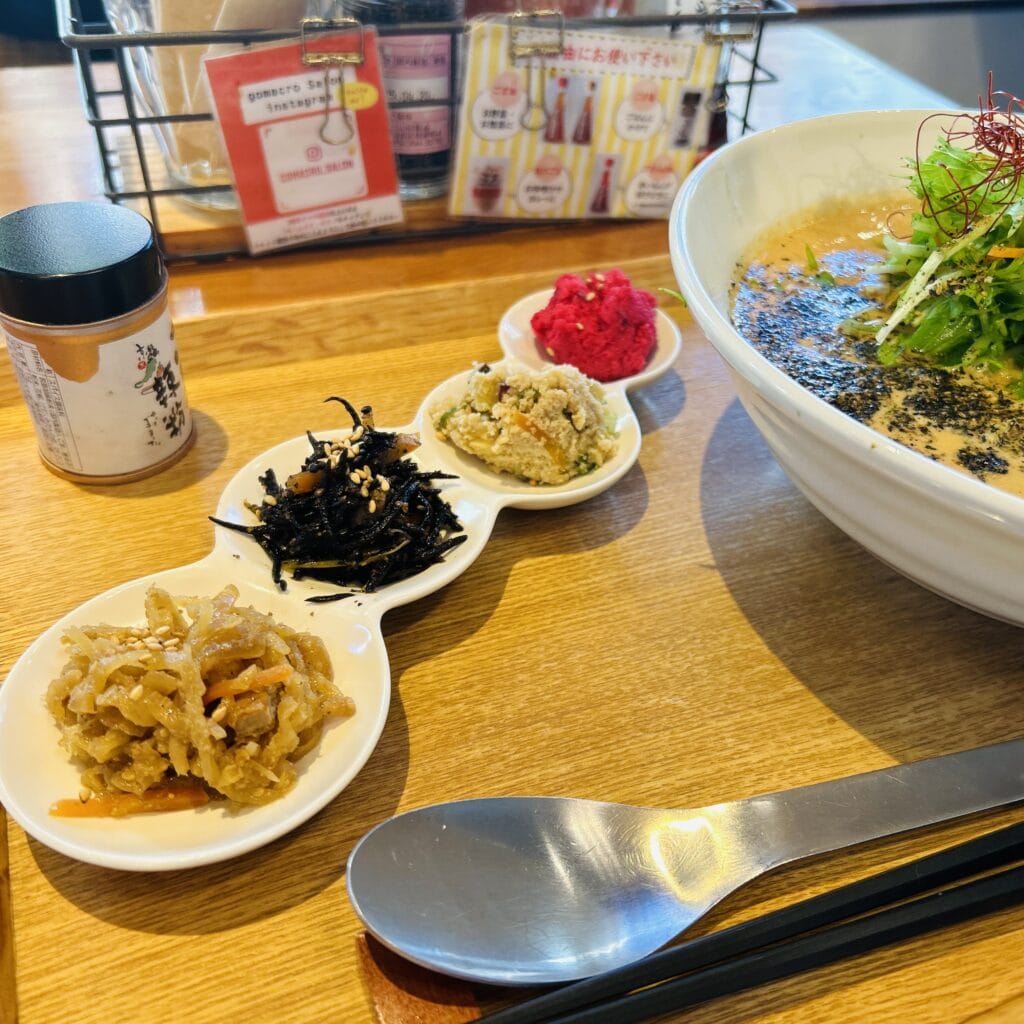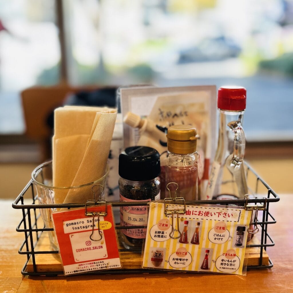 各テーブルには、山田製油の代表製品であるごま油をはじめ、ごま塩、ねりごま、ごまらぁ油がセットされており、お好みで味変が楽しめます♪