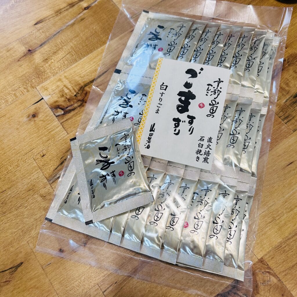 こちら、小袋に入ったすりごまなんですが、このサイズ感がちょうど使いきりサイズで良くって。