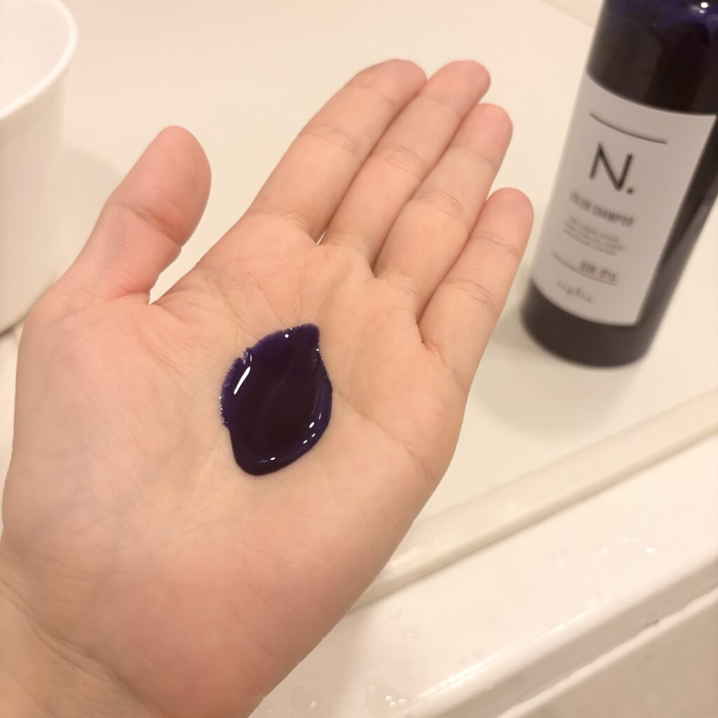 紫シャンプーは、色落ちを抑えてくれるメリットがある反面、髪の毛がキシキシして傷むと聞いて、ドキドキしていたのですが、こちらのN.の紫シャンプーは、洗い流すとしっとりツヤツヤな仕上がりになるんです!(※個人の感想です)