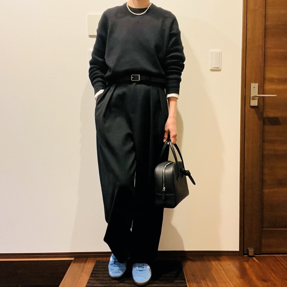 きれいめにもカジュアルにもあわせやすく、特にワイドパンツとの相性の良さから日々の着こなしに欠かせません。