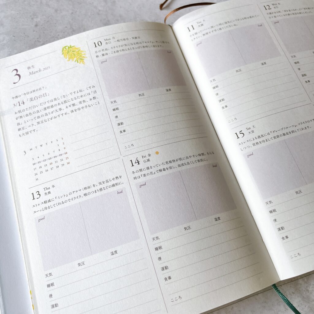 また、薬膳を取り入れた生活を始めてからは、体調管理を記録するツールとしても手帳を活用しています。