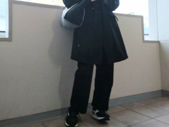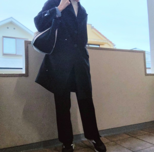 ネイビー、黒、茶と私のアウターは暗めの色ばかりなので、これに黒スニーカーで下半身真っ黒が多かったのですが…。