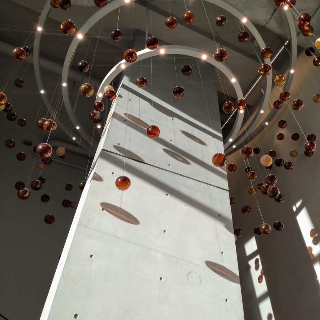2階席へ続く素敵な階段にあるオブジェ。これに見とれていると、どえらいことになります。